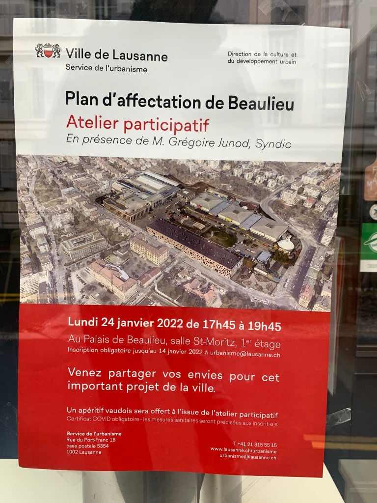 Lundi 24 janvier 2022 de 17:45 à 19:45, au Palais de Beaulieu, salle St-Moritz, 1er étage. Inscription obligatoire jusqu’au 14 janvier 2022 à urbanisme@lausanne.ch.