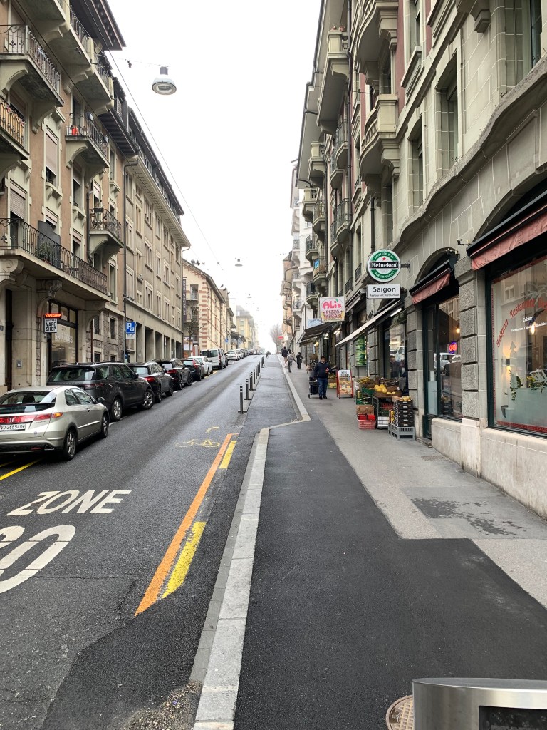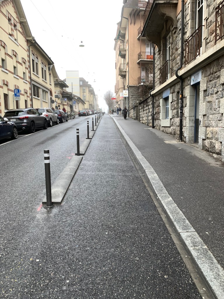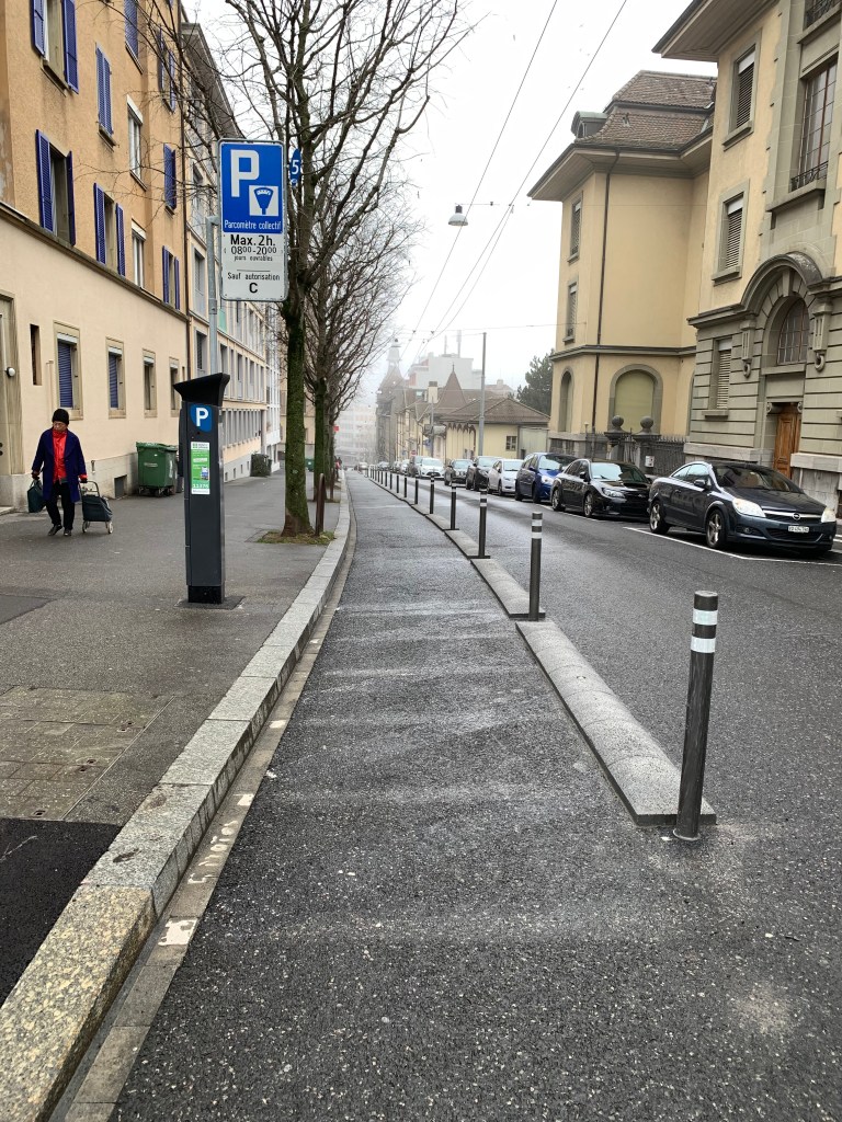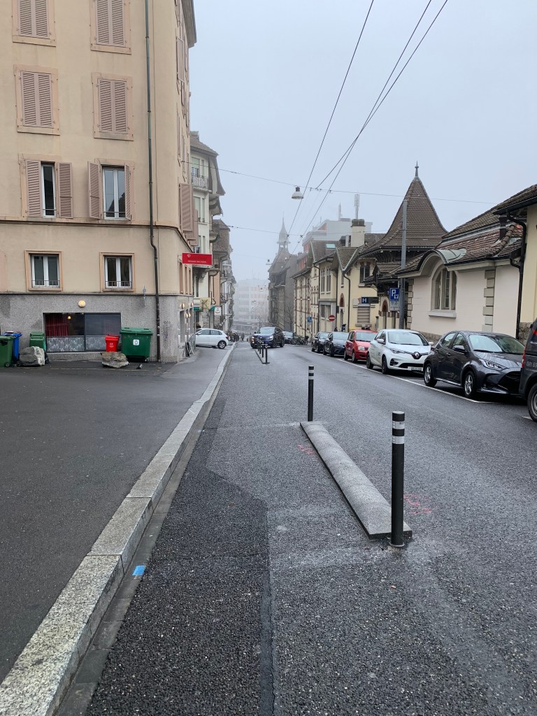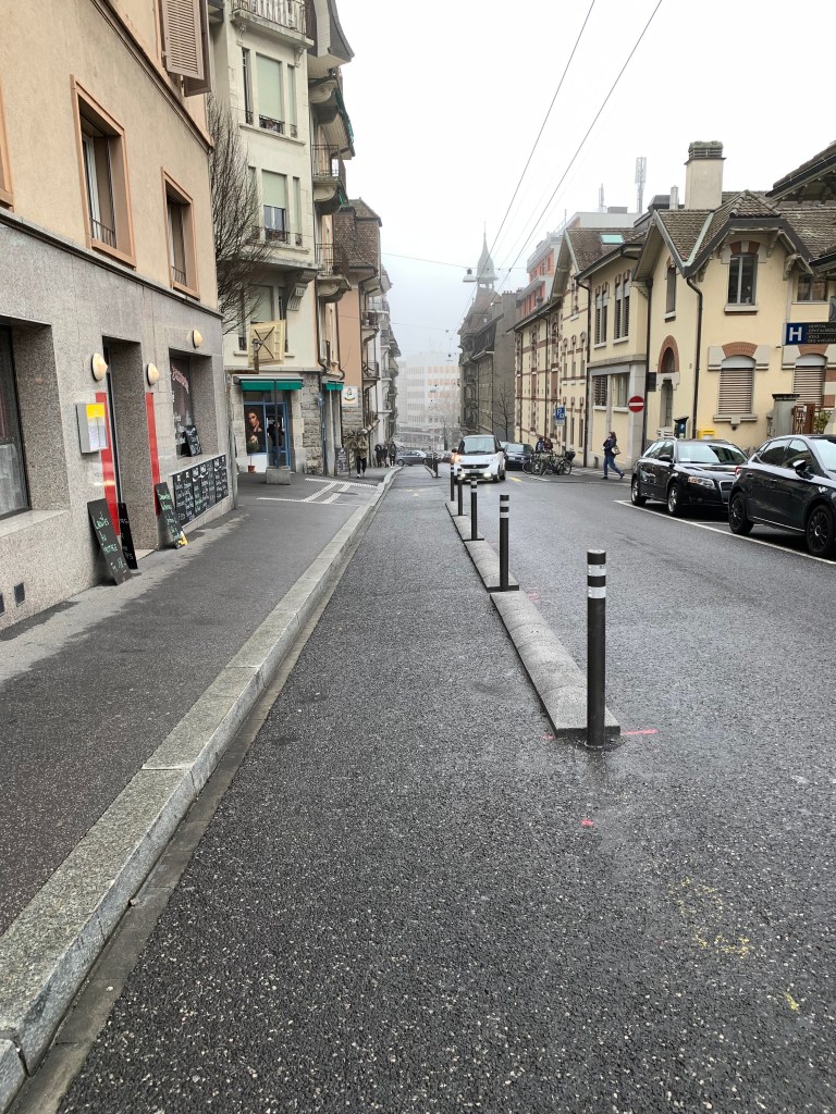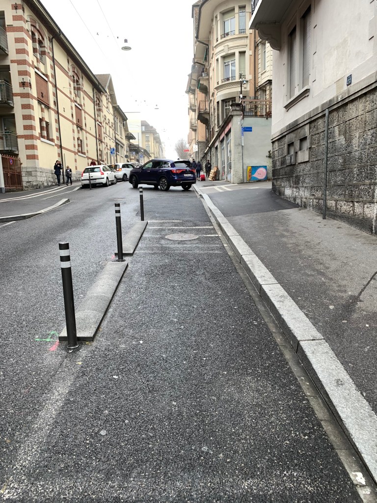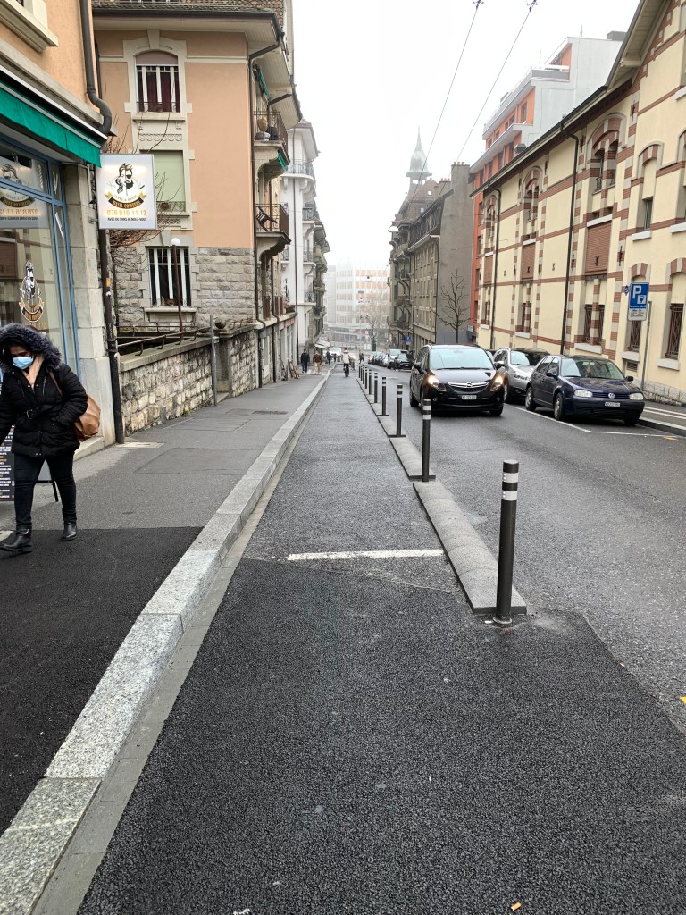 Les travaux sur le début de l’avenue de France semblent terminés et donc nous avons une nouvelle piste cyclable (du no 1 jusqu’au Chemin des Rosiers).