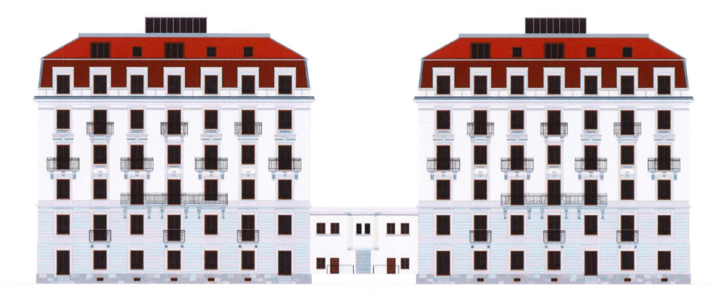 Transformations extérieures et intérieures des bátiments ECA 4450 et 4451 comprenant les mises aux normes sismiques, sécurité et feu, la rénovation énergétique pour label MINERGIE-Rénovation, l’isolation périphérique des batiments, leur raccordement au chauffage à distance, la végétalisation de la toiture du local commercial, la création de logements dans les combles, la redistribution des locaux communs et des logements. lagrandissement des appartements au rez-de- chaussée inférieur, la création d’une ouverture sur les façades OUEST et Est, le remplacement des fenêtres et lagrandissement des Velux. la création de lucarnes en baignoire. l’installation de panneaux photovoltaiques, cheminée et exutoire de fumée en toiture, ainsi que divers aménagements extérieurs comprenant des systèmes de stationnement pour 88 vélos, un emplacement pour les conteneurs a